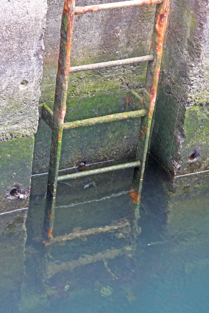 Harbor ladder descending into waterHarbor ladder descending into waterHarbor ladder descending into water - Azores
